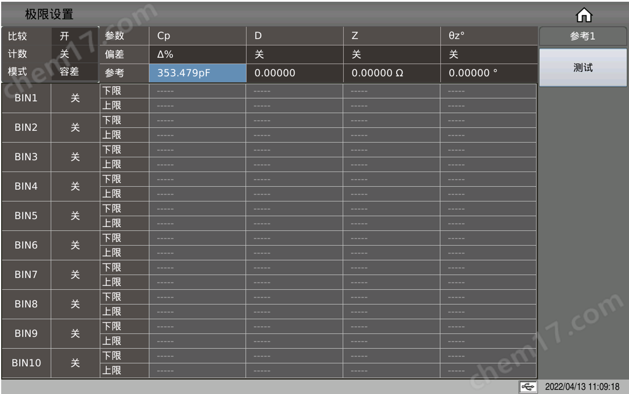 比较器 | Bin分档 | 10Bin、PASS、FAIL | |||||||||