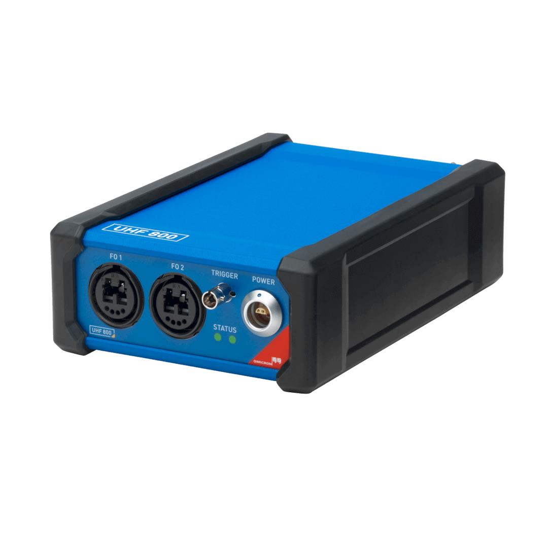 UHF 800 数据采集单元有两个坚固的输入通道,可以安全方便地通过光纤连接到系统的 MCU2 主控单元以及其他数据采集单元。